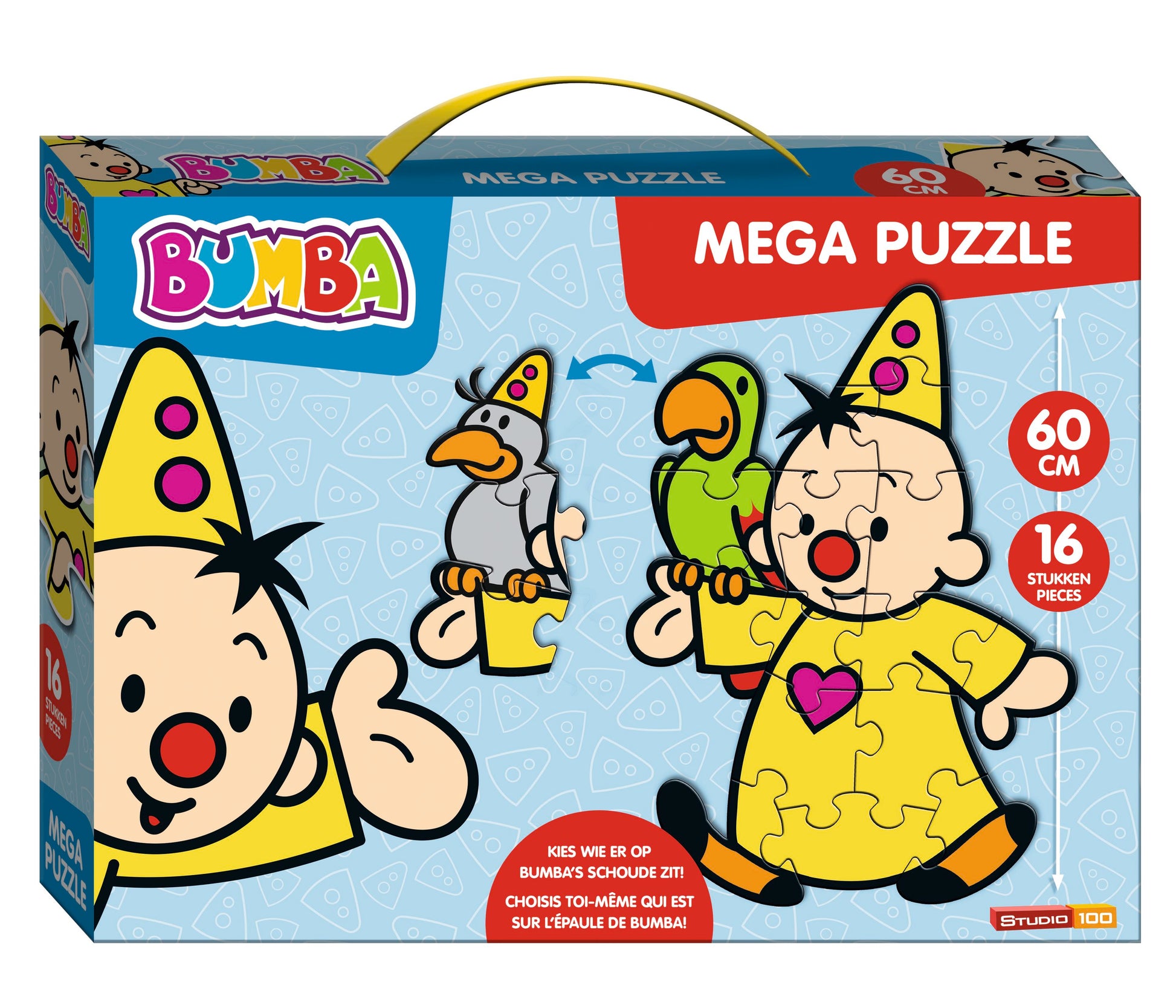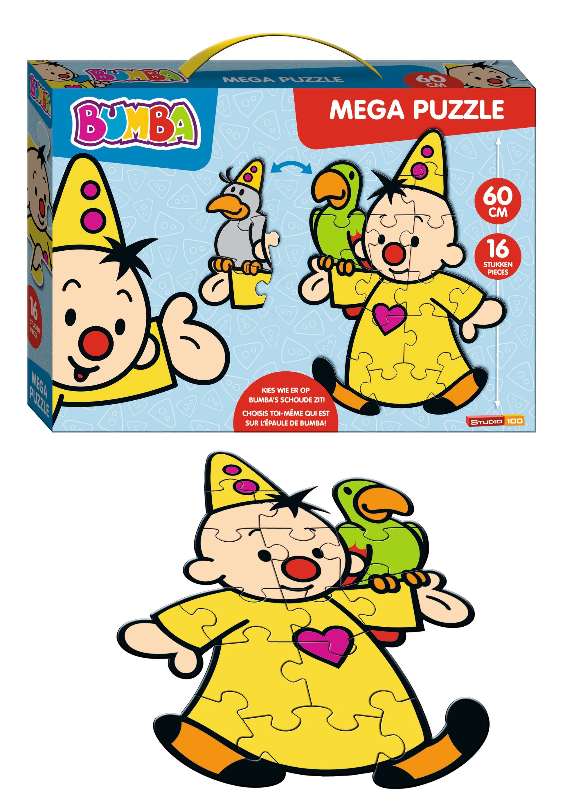 Bumbafans, opgelet! Dit is geen gewone puzzel maar een supergrote vloerpuzzel van jouw beste vriendje Bumba! De puzzel heeft twee vormen dus jij mag zelf kijken wie Bumba meeneemt op zijn schouder, Kiwi of de papegaai? Puzzelen maar!