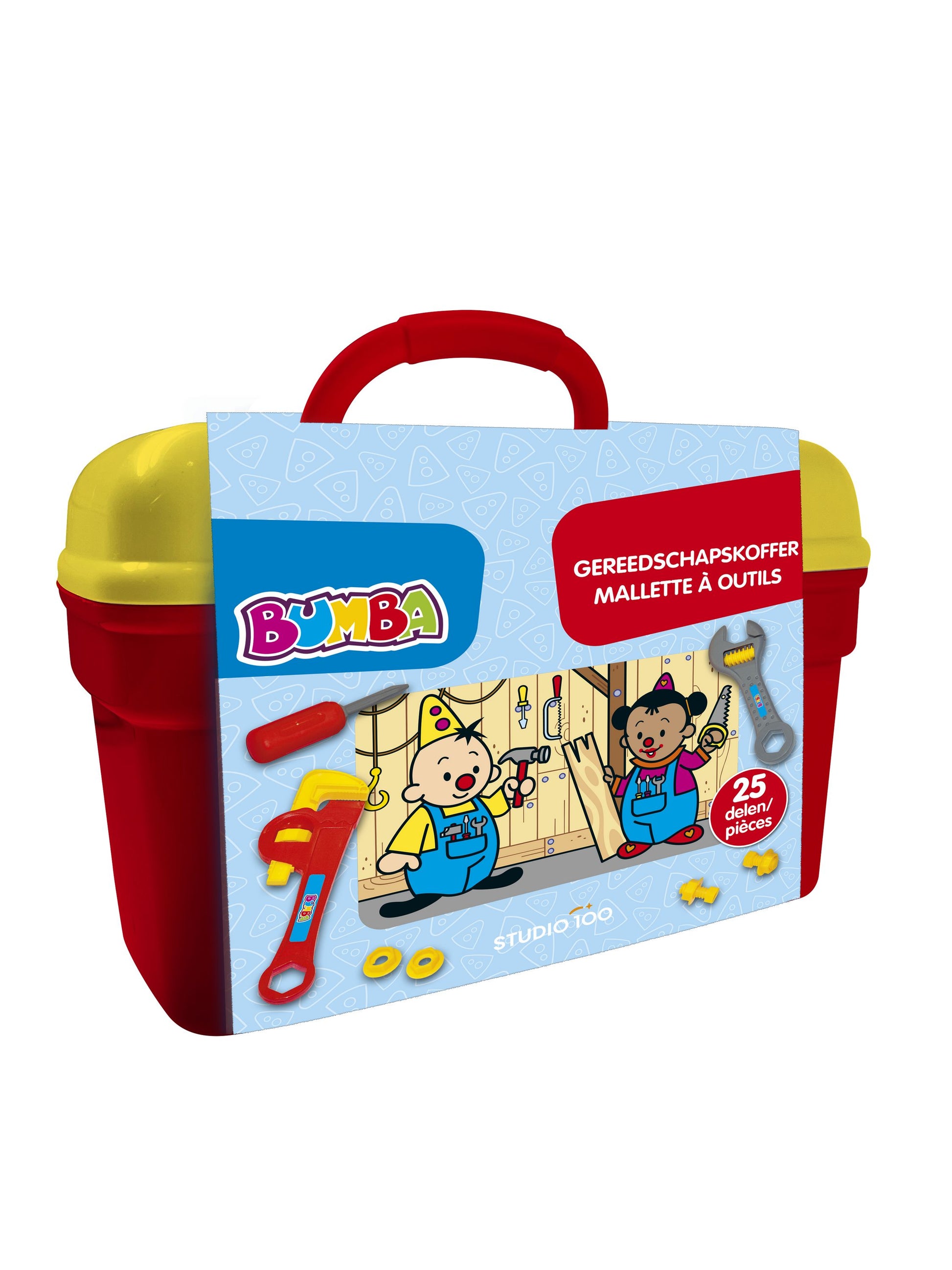 Met deze kleurrijke Bumba-speelgoedgereedschapskoffer beleeft jouw kindje eindeloos speelplezier! De stevige koffer bevat maar liefst 25 verschillende onderdelen, zoals een speelgoedhamer, schroevendraaiers, moeren, bouten en nog veel meer. Alles is speciaal ontworpen voor kleine handjes, veilig in gebruik en perfect om de fantasie te prikkelen.