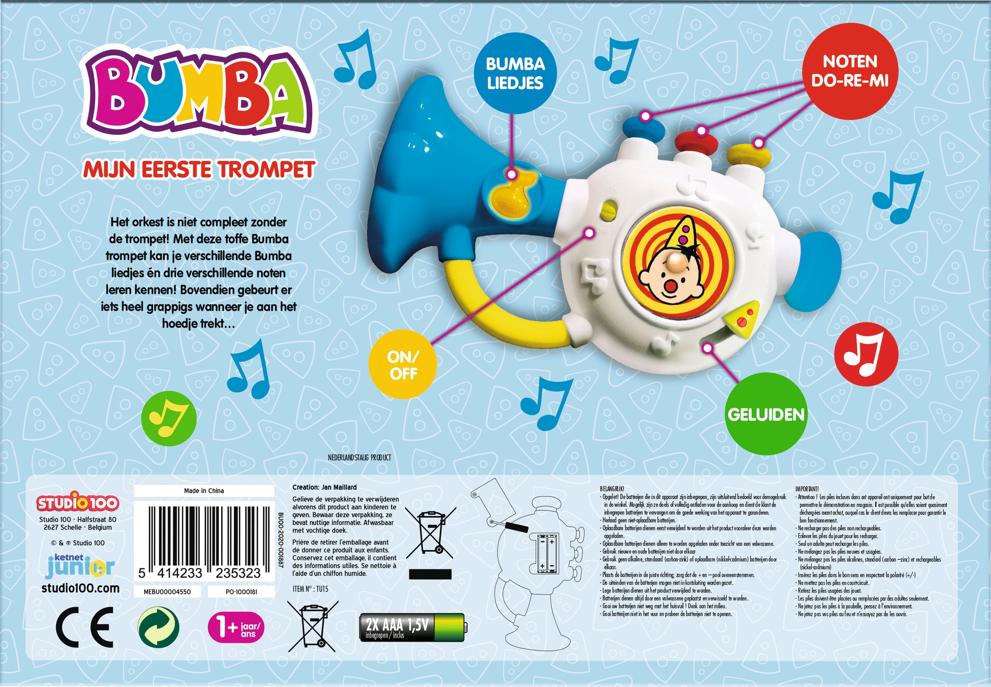 Het orkest is niet compleet zonder de trompet! Met deze toffe Bumba-trompet kan je verschillende Bumba-liedjes én drie verschillende noten leren kennen! Bovendien gebeurt er iets heel grappigs wanneer je aan het hoedje trekt…