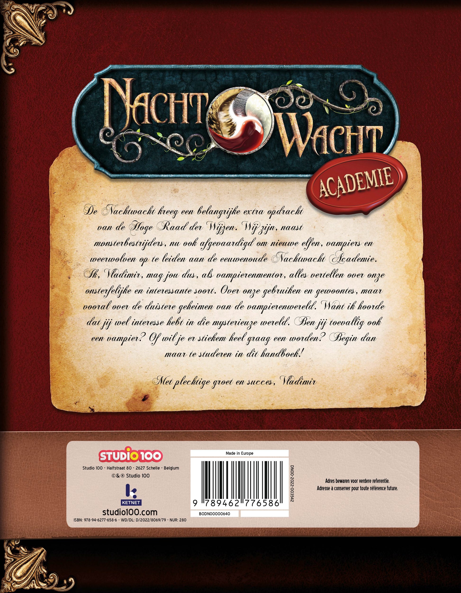 De Nachtwacht kreeg een belangrijke extra opdracht van de Hoge Raad der Wijzen. Wij zijn, naast monsterbestrijders, nu ook afgevaardigd om nieuwe elfen, vampiers en weerwolven op te leiden aan de eeuwenoude Nachtwacht Academie. Ik, Vladimir, mag jou dus, als vampierenmentor, alles vertellen over onze onsterfelijke en interessante soort. Over onze gebruiken en gewoontes, maar vooral over de duistere geheimen van de vampierenwereld. Want ik hoorde dat jij wel interesse hebt in die mysterieuze wereld. Ben jij toevallig ook een vampier? Of wil je er stiekem heel graag een worden? Begin dan maar te studeren in dit handboek om je vampierendiploma te behalen! Met plechtige groet en succes, Vladimir