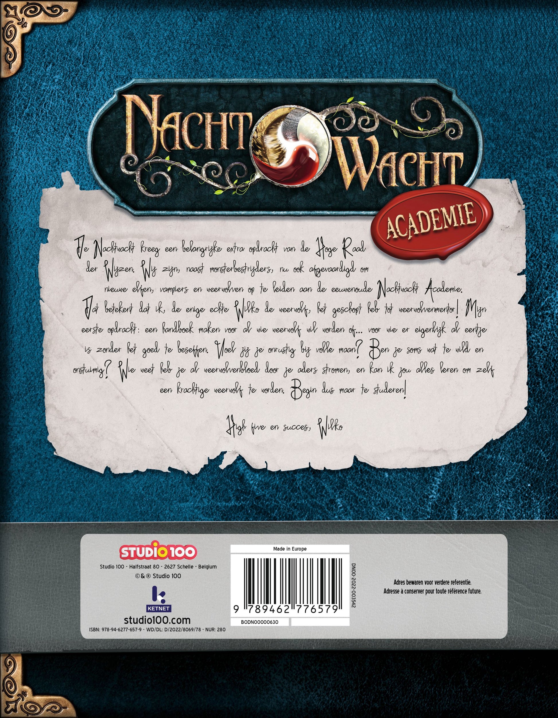 De Nachtwacht kreeg een belangrijke extra opdracht van de Hoge Raad der Wijzen. Wij zijn, naast monsterbestrijders, nu ook afgevaardigd om nieuwe elfen, vampiers en weerwolven op te leiden aan de eeuwenoude Nachtwacht Academie. Dat betekent dat ik, de enige echte Wilko de weerwolf, het geschopt heb tot weerwolvenmentor! Mijn eerste opdracht: een handboek maken voor al wie weerwolf wil worden of… voor wie er eigenlijk al eentje is zonder het goed te beseffen. Voel jij je onrustig bij volle maan? Ben je soms wat té wild en onstuimig? Wie weet heb je al weerwolvenbloed door je aders stromen, en kan ik jou alles leren om zelf een krachtige weerwolf te worden. Begin dus maar te studeren om je weerwolvendiploma te behalen! High five en succes, Wilko
